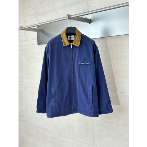 미우미우 코듀로이 칼라 개버딘 트럭커 자켓