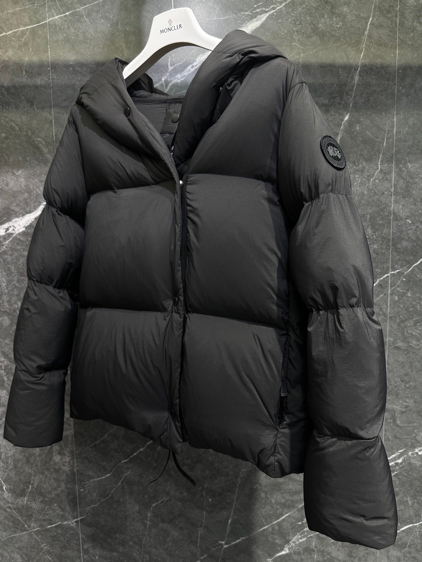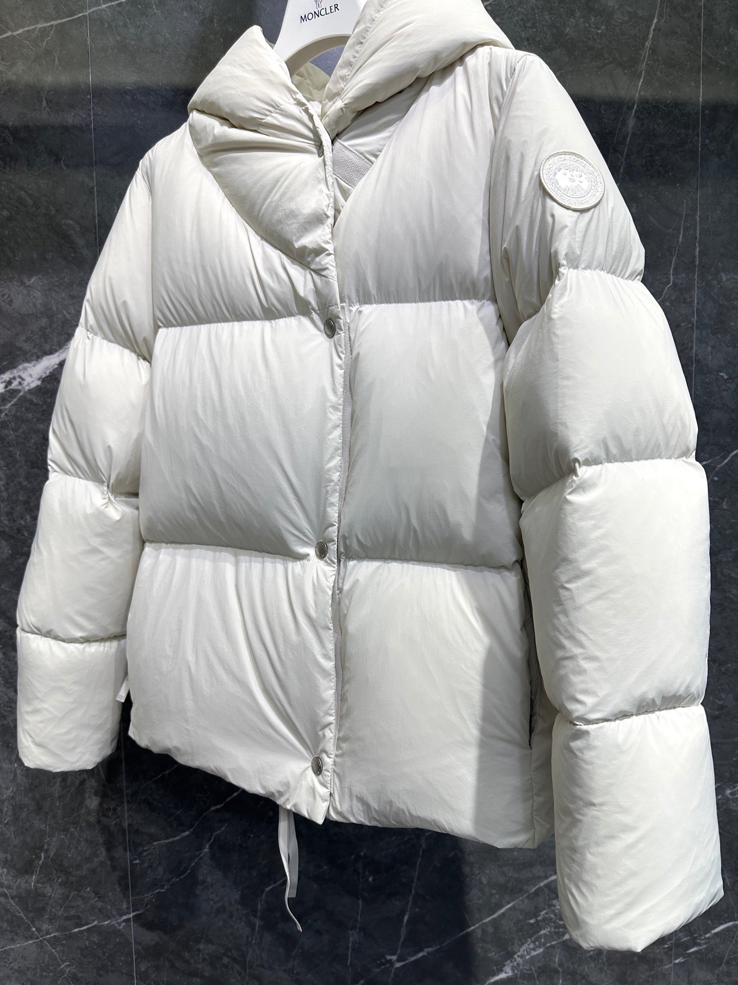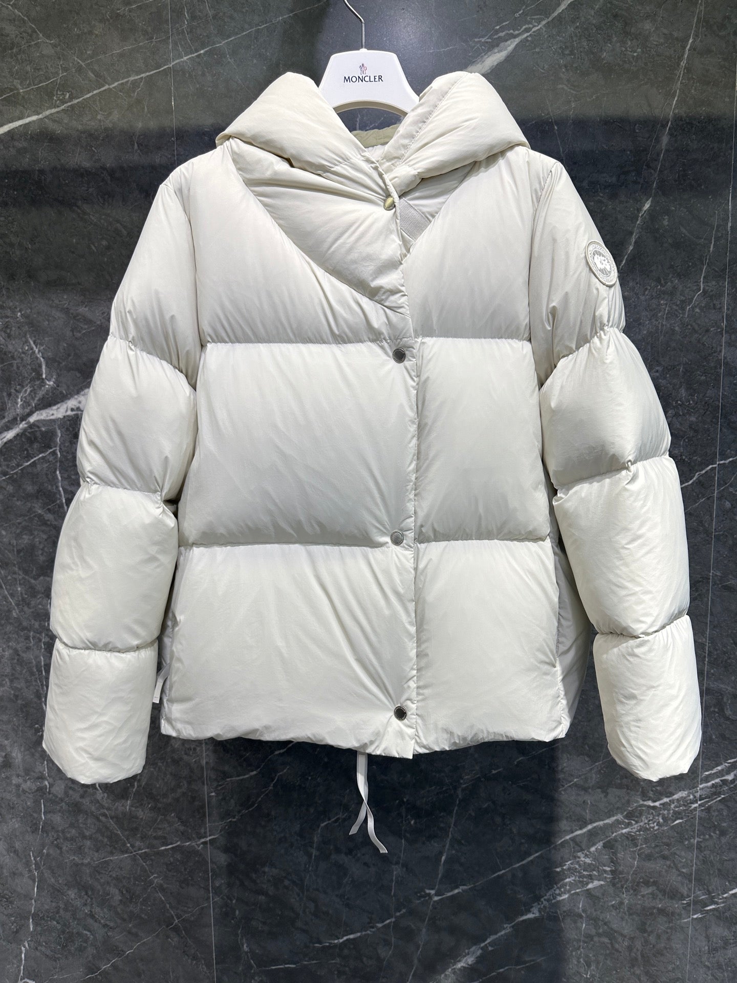 캐나다구스 로다 로고 패치 숏 패딩