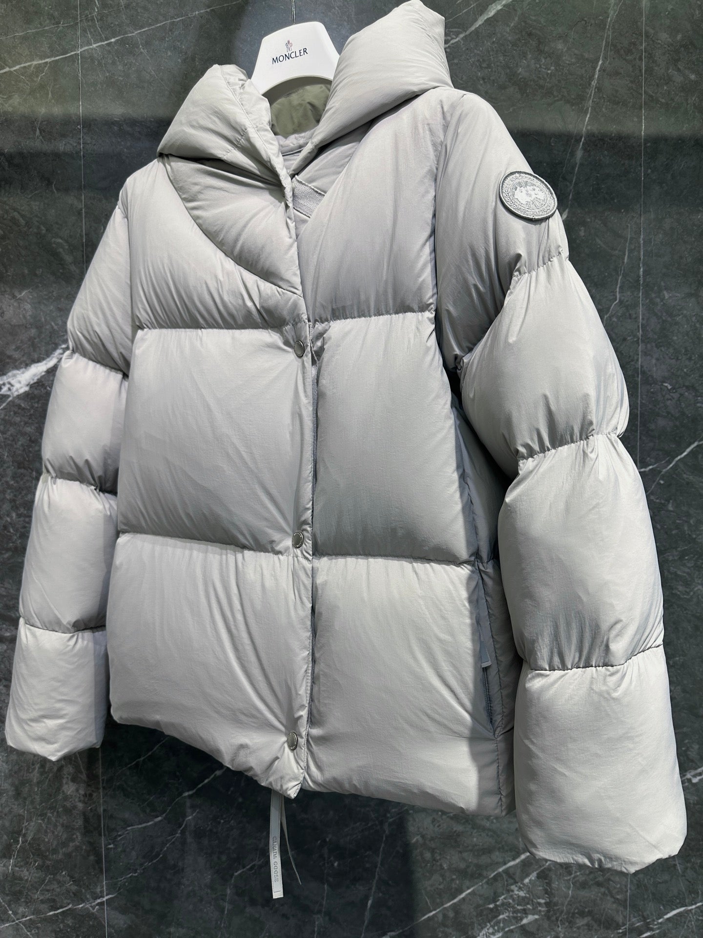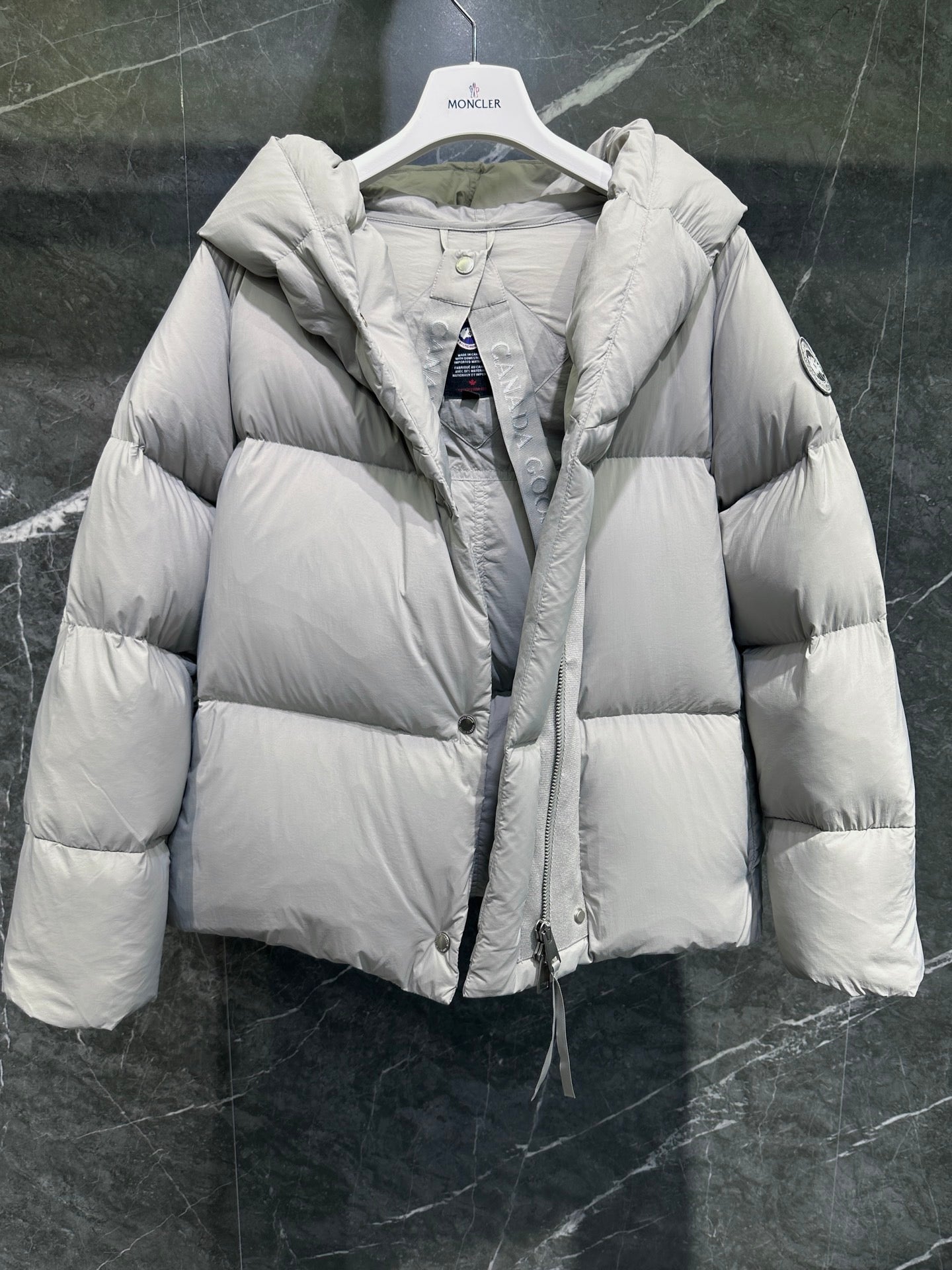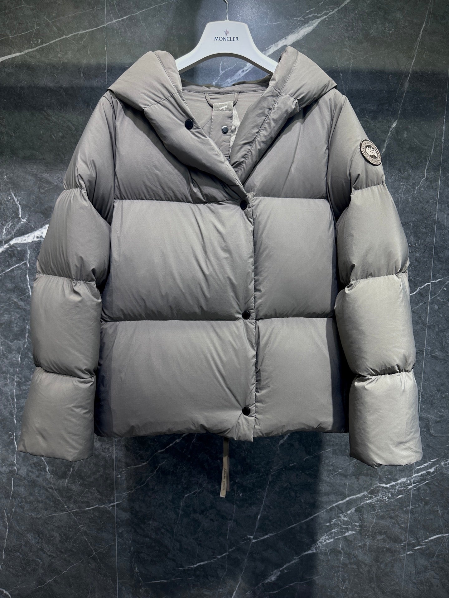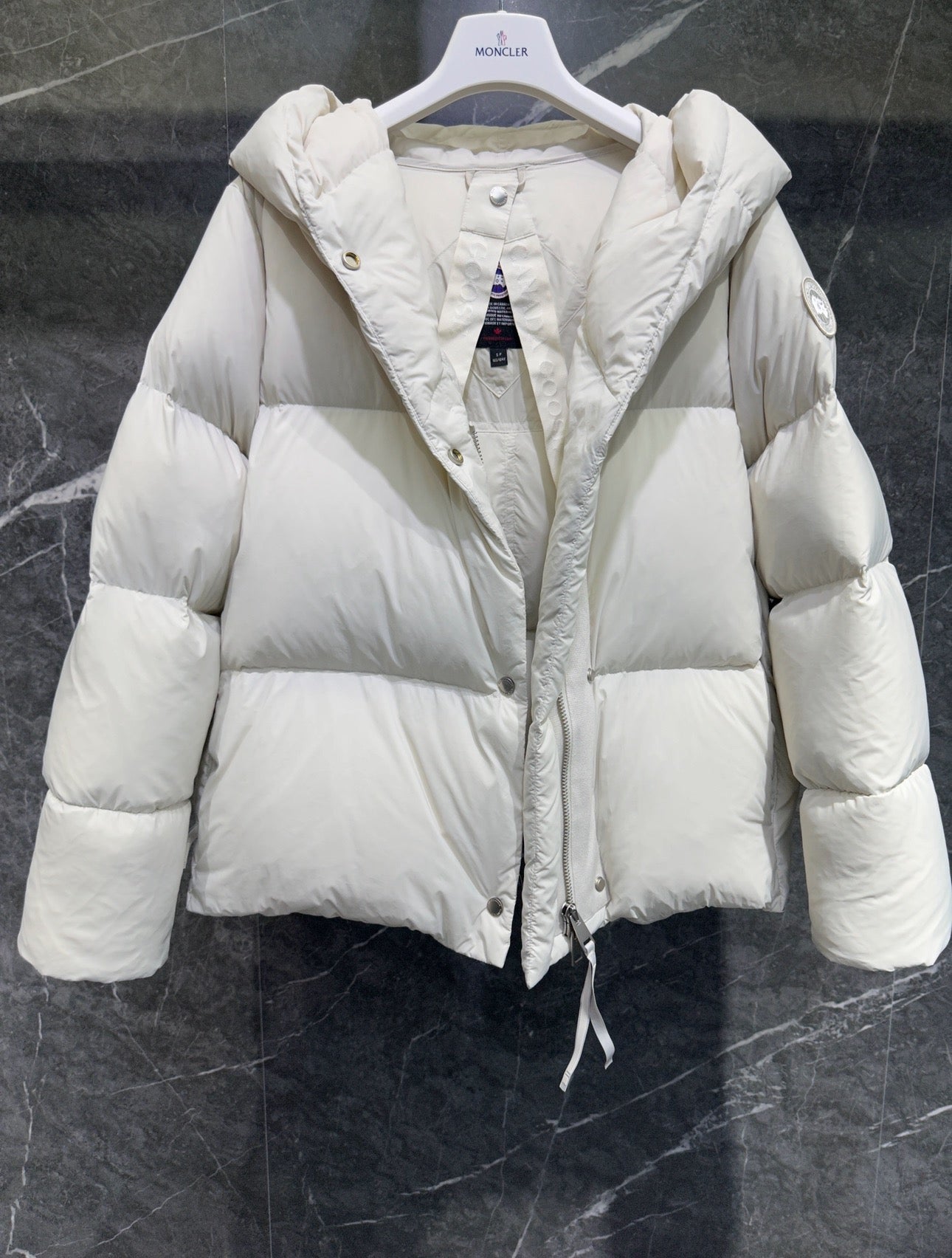 캐나다구스 로다 로고 패치 숏 패딩