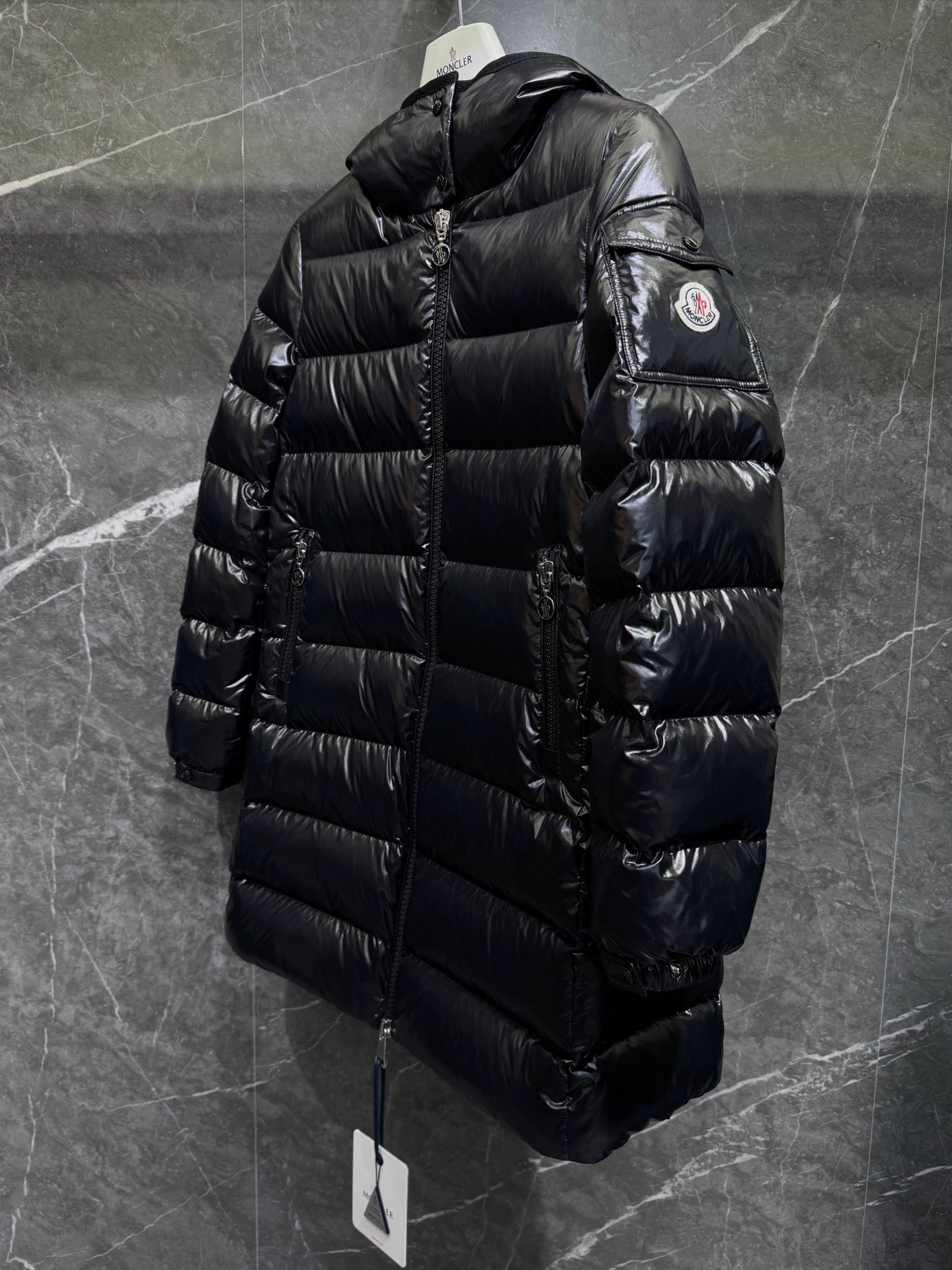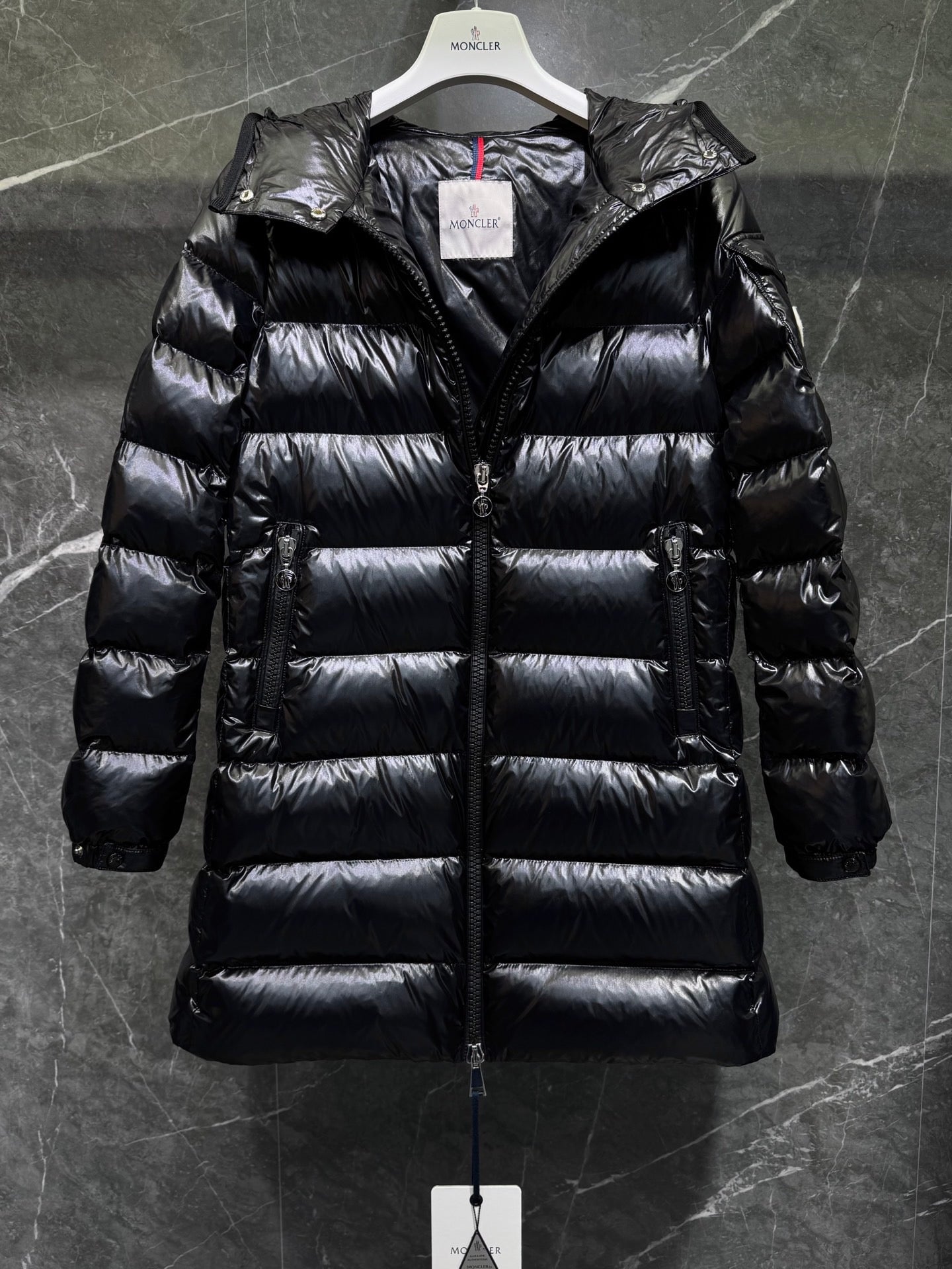 쿠르셀 후드 미디 길이 다운 자켓