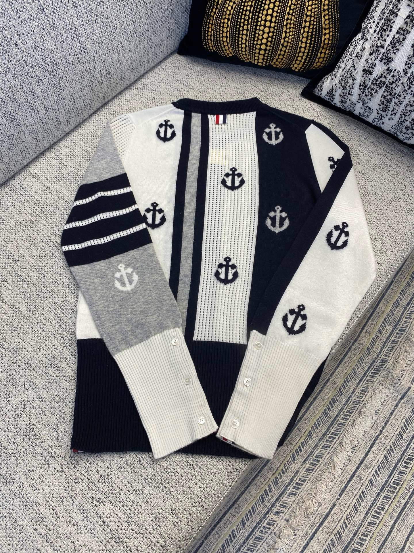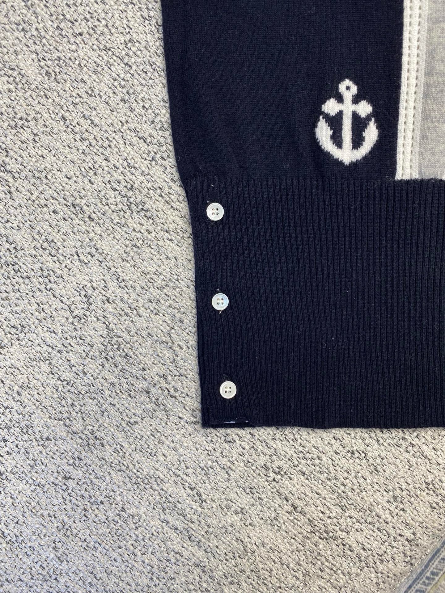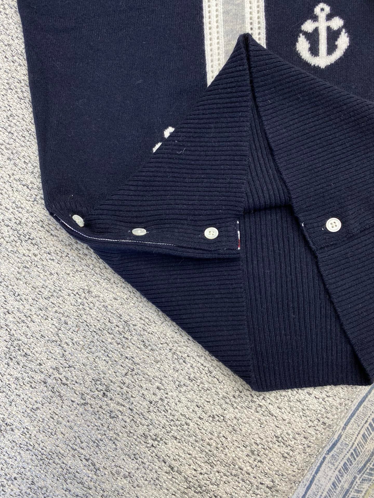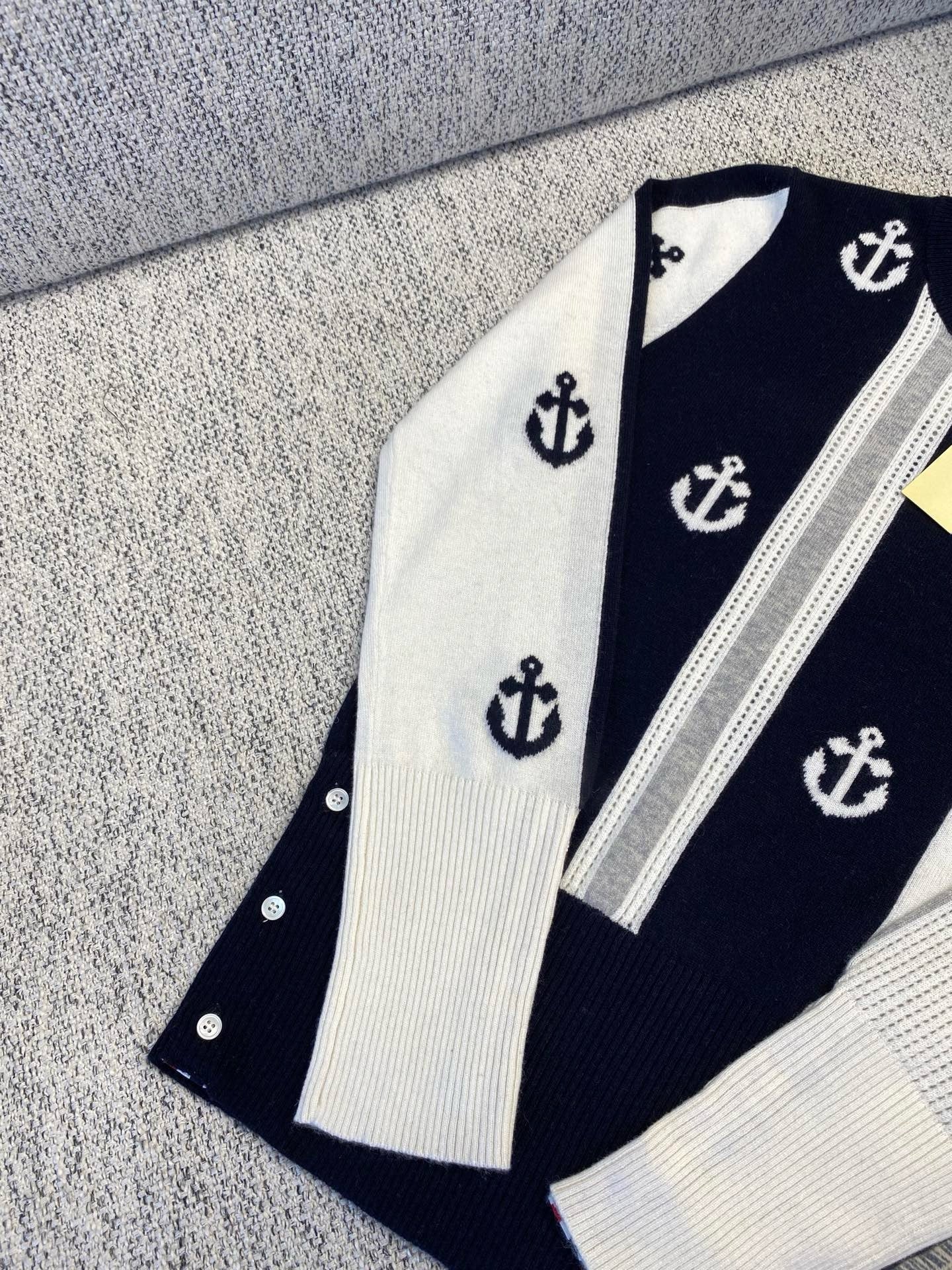 톰브라운 앵커 인타르시아 사선 브이넥 가디건