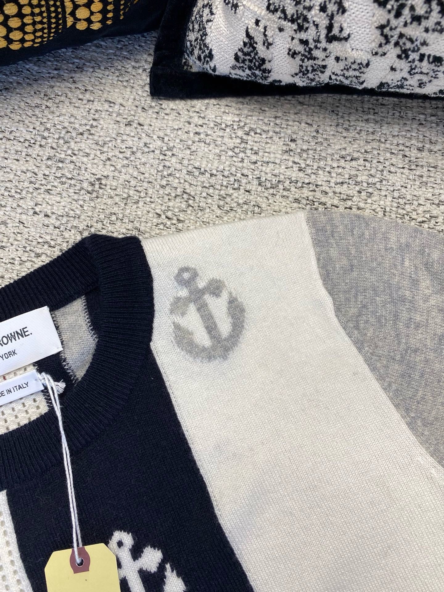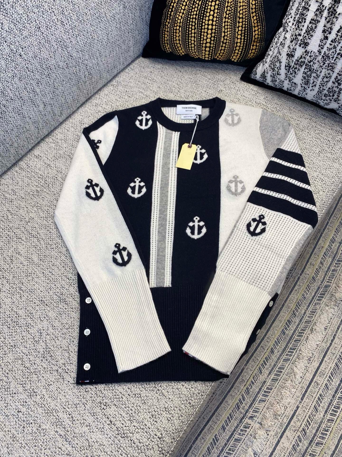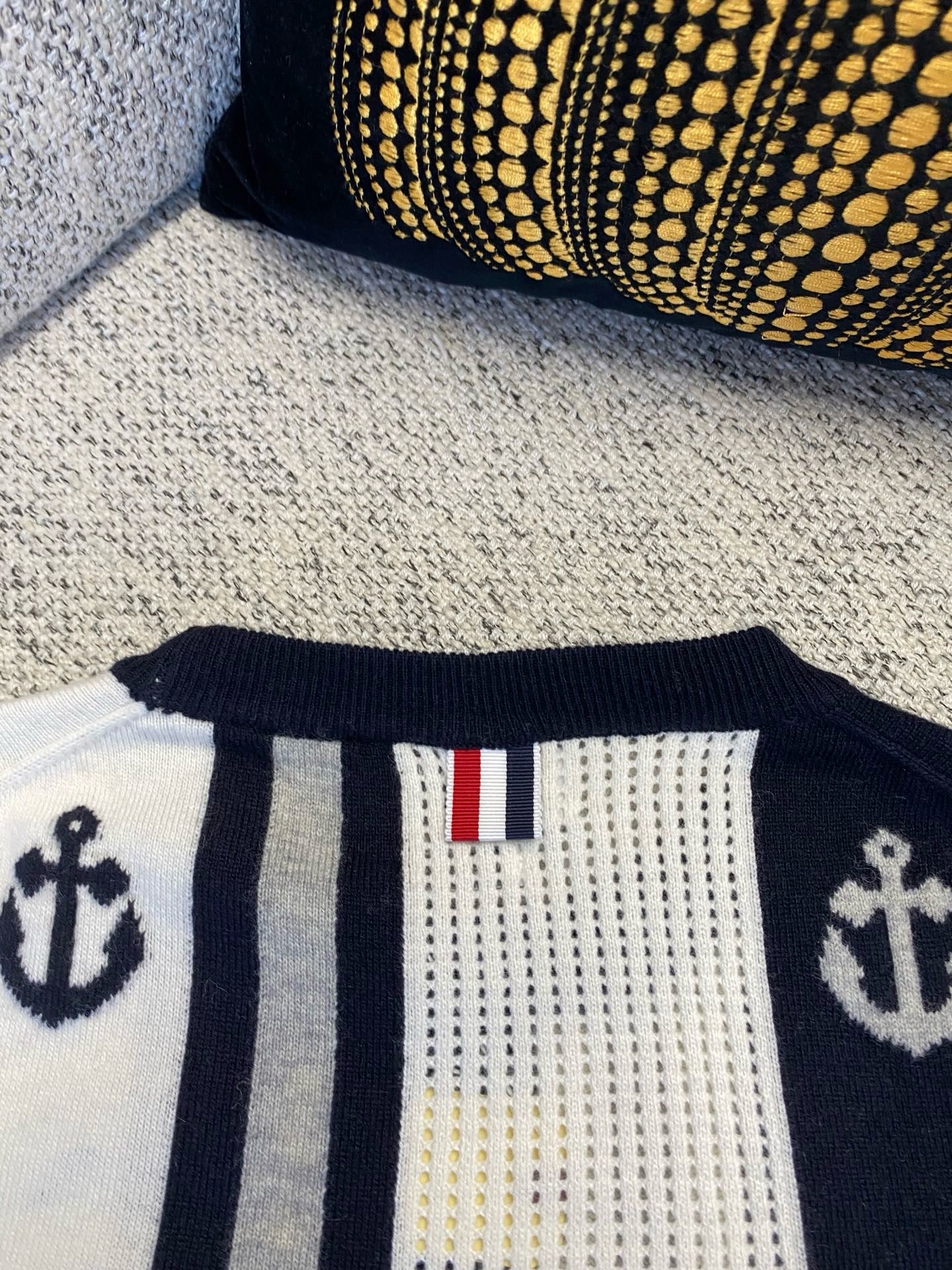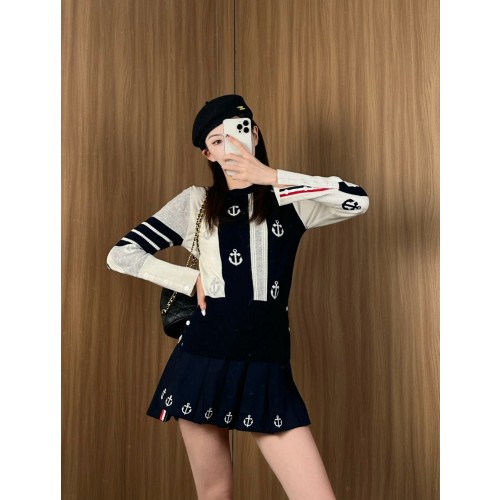 톰브라운 앵커 인타르시아 사선 브이넥 가디건