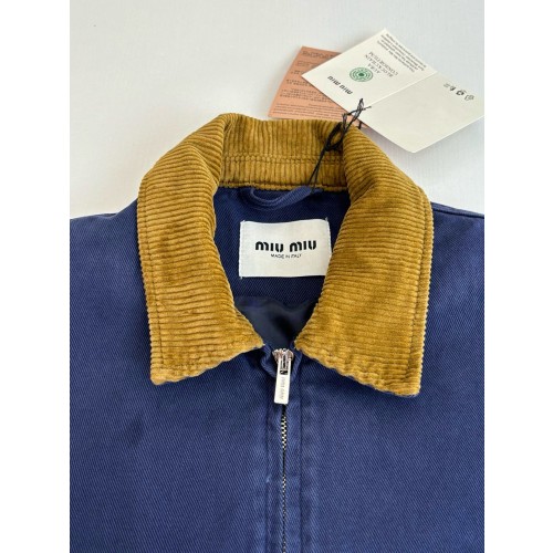 미우미우 코듀로이 칼라 개버딘 트럭커 자켓